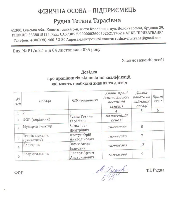 Але якщо відсутність досвіду ще можна списати на кричущу службову недбалість замовника, то аналіз поданих переможницею документів вказує на куди більш цинічну схему. ФОП Рудна Тетяна Тарасівна виявилася не просто новачком-щасливчиком, а класичною «прокладкою» — юридичним аватаром для відомого у районі «тендерного короля».